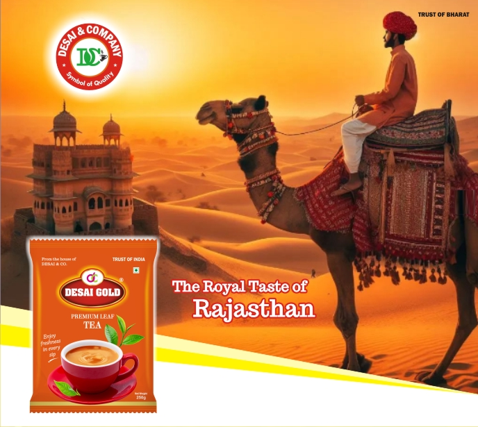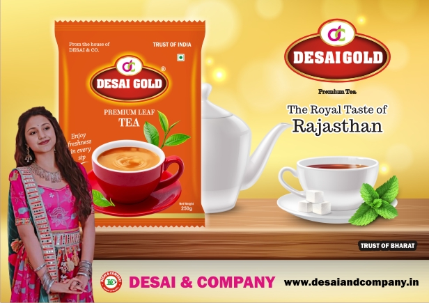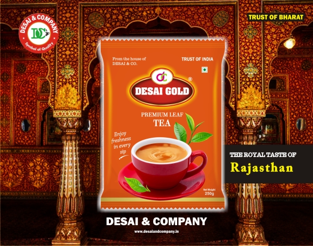 Desai Gold is a premium strong tea crafted by Desai & Co., inspired by the vibrant spirit of Rajasthan. Rich in flavour and strength, every cup exudes warmth, tradition and energy. It is a true golden blend for tea lovers looking for a tangy flavour with a touch of heritage.
